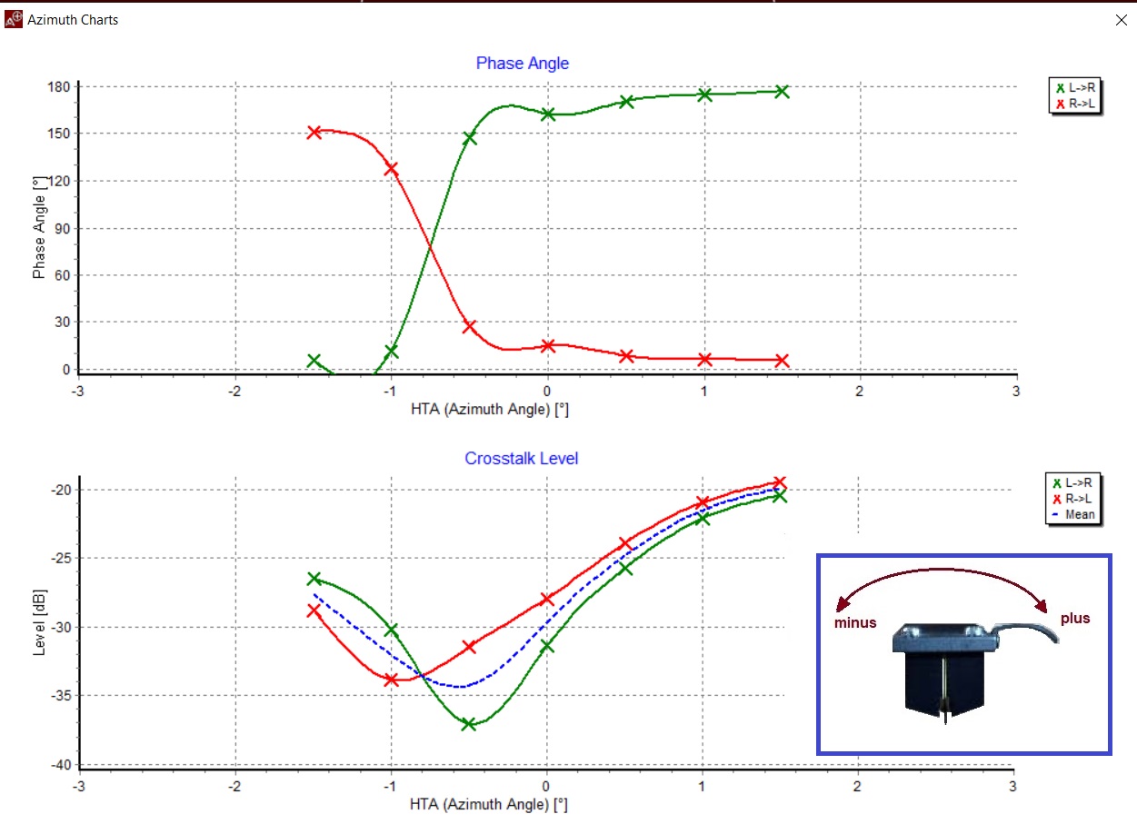 Those of you with keen eyes and experience with the Feickert software may notice that the plus and minus directions are reversed in the chart. This is intentional. I view clockwise movement as movement in a positive direction, so I recorded the numbers in “reverse” to achieve this.